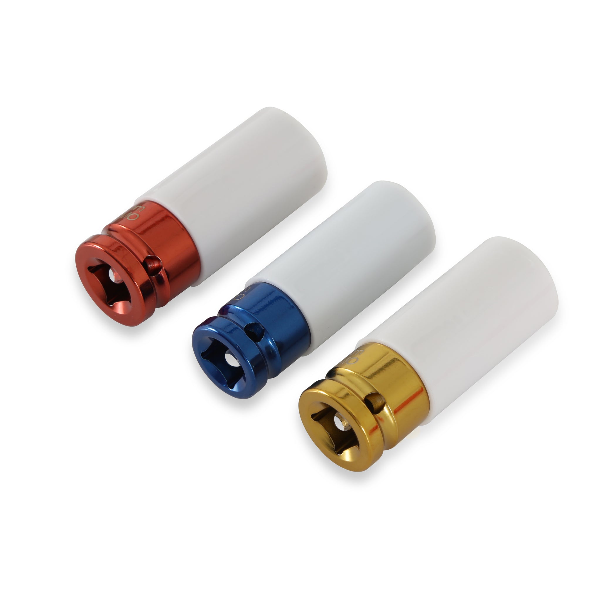Anti-marring lug nut socket set with a blow molded case. 1/2" drive deep 17mm, 19mm, and...