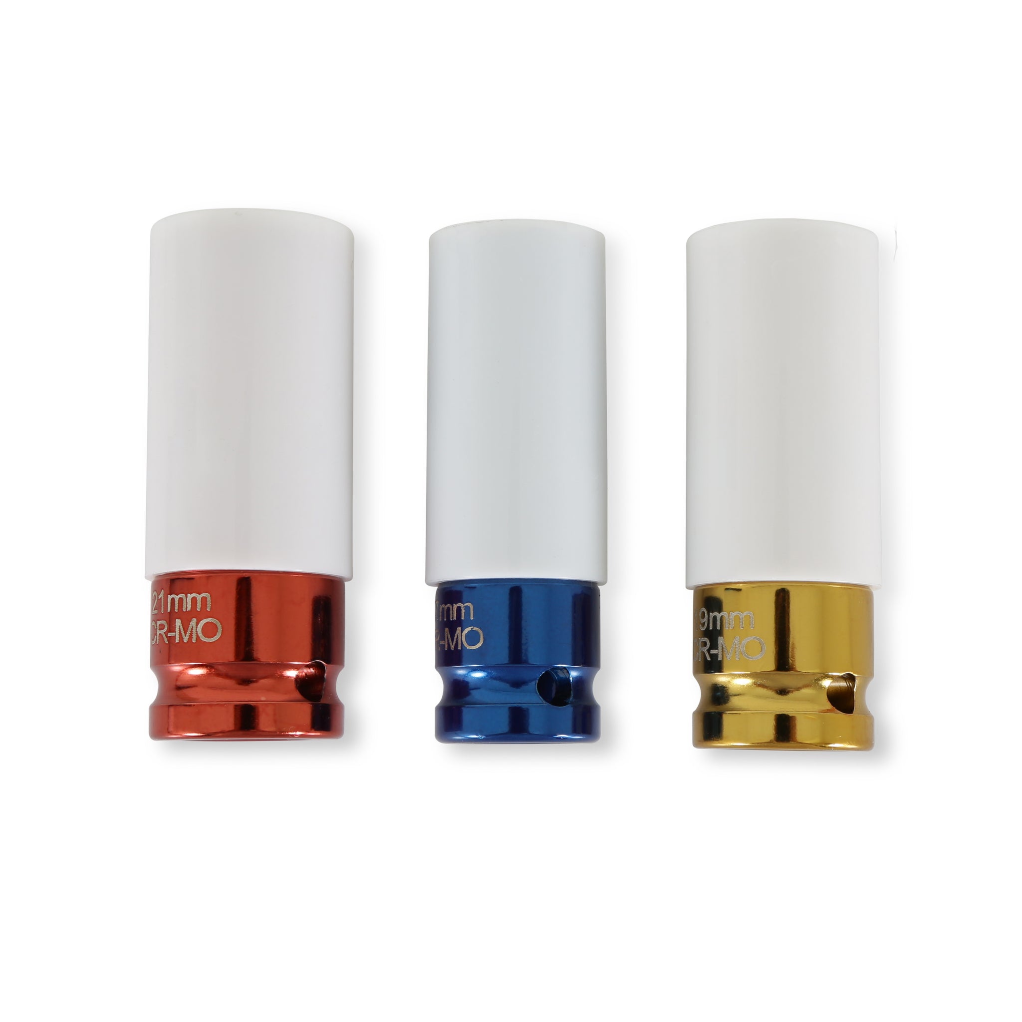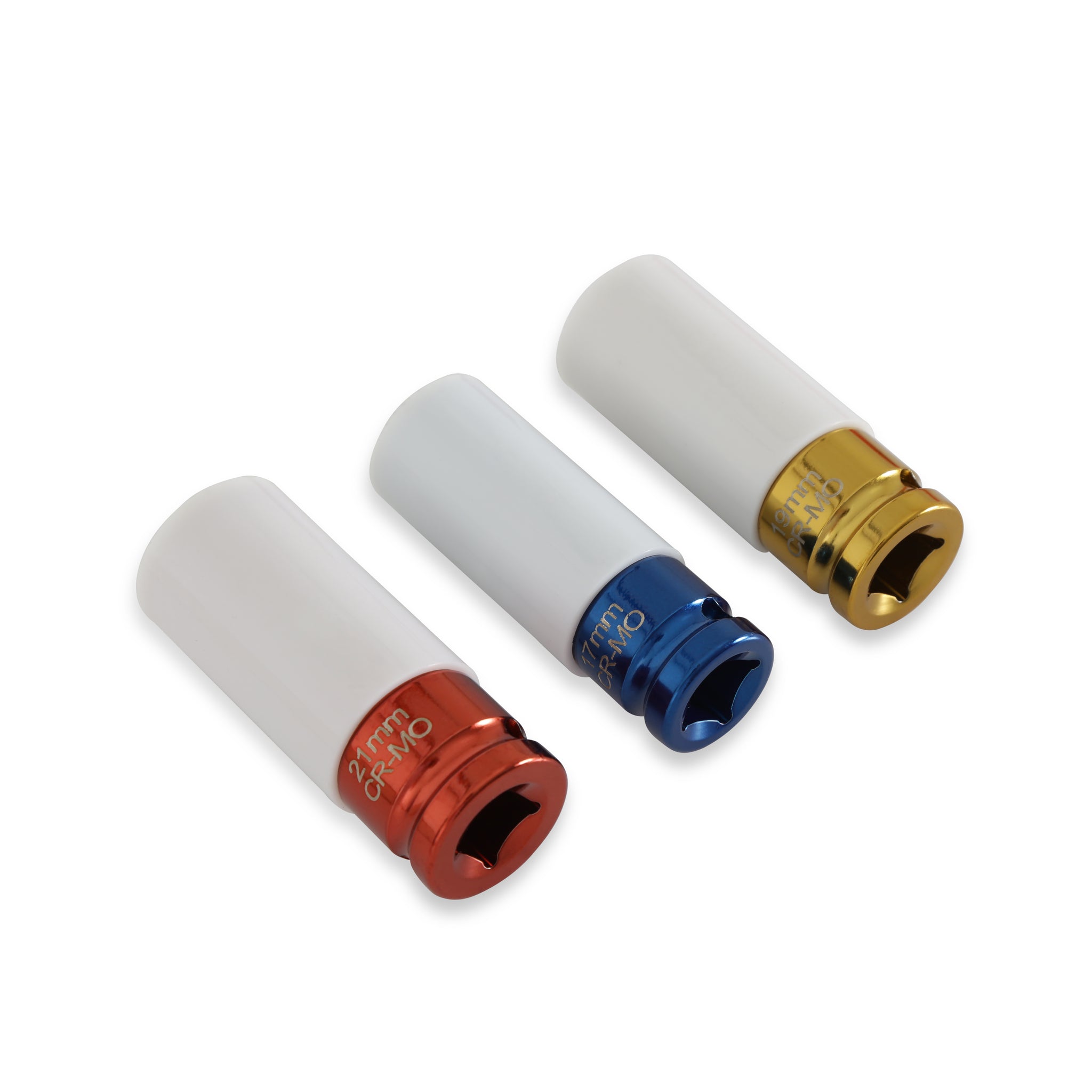 Includes 17mm, 19mm, and 21mm sockets