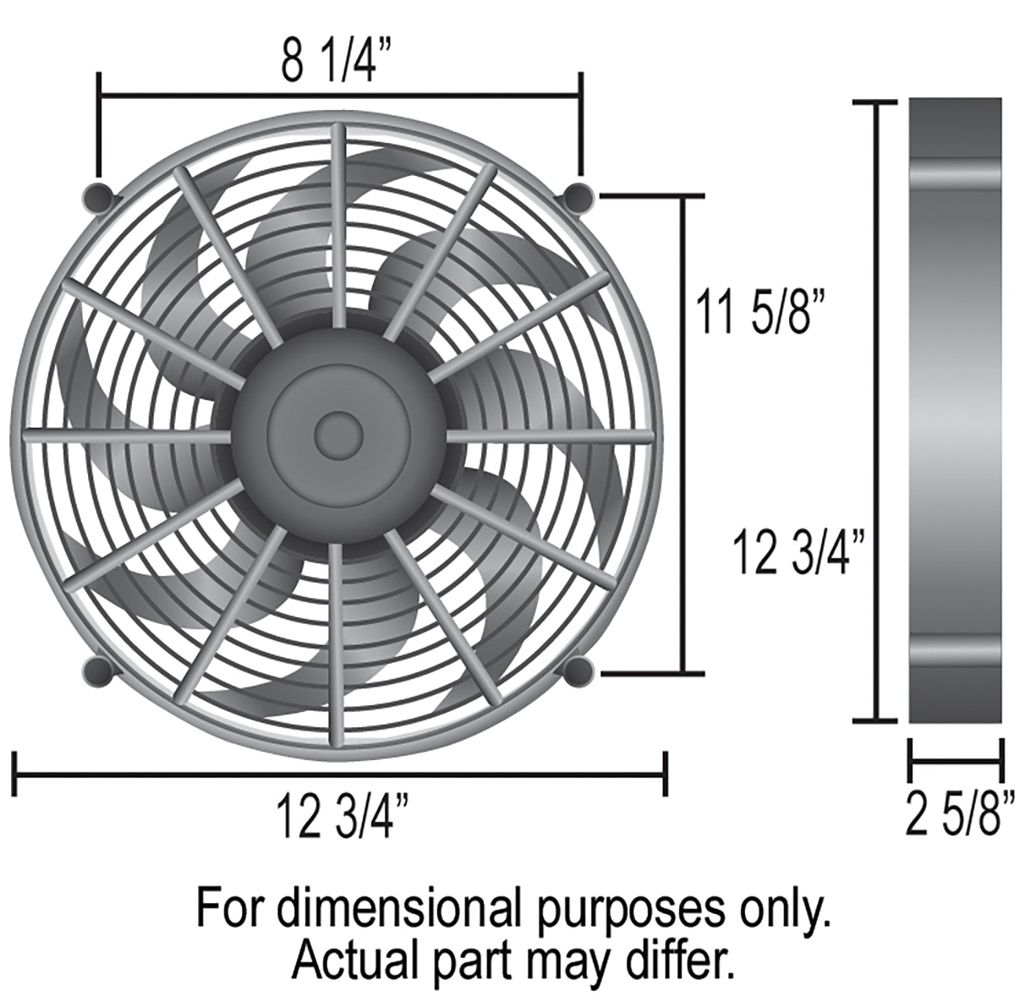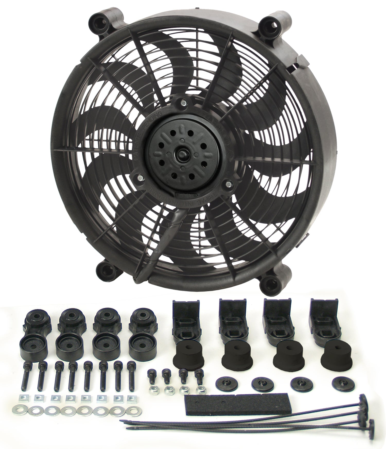 Our most compact version of the High Output Single RAD fan series, this 12" fan is a self-shrouded, symmetrical design with four molded mounting points. Motivated by a 2-speed 265 watt Bosch motor driving 11 patented skewed blades, each includes a patented ratchet mounting system for a professional installation. Can be used as a pusher or puller fan by simply flipping brackets without changing direction of the unit. Moves up to 1450 CFM while drawing up to 21 amps.