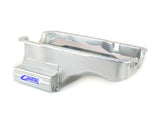 This front sump Ford 289-302 road race pan fits in most front sump production chasssis except Mustang II, and Maverick's and Comets which may require modification. It has an 8" deep by 13-1/2" wide sump, with a 7 qt. system capacity. This pan requires our 15-611 pickup. Will work with stock & aftermarket starters.