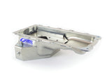 This ?T? style modular rear sump road race oil pan is designed for Ford 4.6L/5.4L blocks in ?96-?04 & ?05-up Mustangs. It has 6-1/4" deep, 12-3/4" wide by 9-1/4" long sump and a 7 quart system capacity. Use Your OEM pickup for this pan.