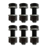 PROFORM Wedge-Locking Exhaust Collector Bolts ELIMINATE the need to constantly re-tighten collector bolts, and without the need for clips, pins, racing-wire, chemicals or gunk. The secret is in the Wedge-Locking Washer's super-hardened external teeth that "bite" into the bottom of the bolt head and the top flange surface. Vibrations that normally cause other bolts to loosen, are blocked by the wedge-locking action that uses tension, instead of friction to stay snug. In fact, contact with oil actually facilitates the effect. Installs/uninstalls with a normal wrench, lubricate, and then reuse. Each set comes with six Grade 8 bolts (3/8"-16 thread, 1" long) with a black oxide finish, six nuts and six pairs of Wedge-Locking Washers.
