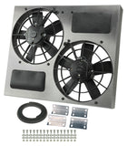 This Dual High Output RAD Fan Powerpack Assembly allows true Dual Fan performance in a package the size of others Single shrouded fans. Featuring an aluminum shroud measuring a tidy 22 1/2" wide by 19" top to bottom and only 4 1/2" in overall depth to offer an adjustable yet precision fit, it uses two IP-68 certified waterproof/dustproof 11" electric fans to provide a powerful one-two 3750 cfm punch to a hot engine. The natural, non-finished aluminum shroud gives the user the freedom to polish, anodize, paint, or simply leave it raw to create a truly custom look at a reasonable price.