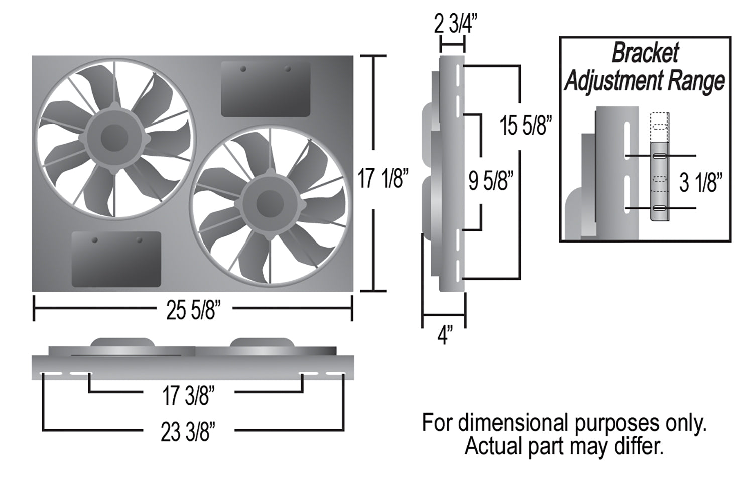This Dual High Output RAD Fan Powerpack Assembly is part of the HO Aluminum Shrouded Fan Series that is designed with the application in mind. Based on some of the most common radiator core sizes sold today, this unit features an aluminum shroud measuring 25 5/8" wide by 17 1/8" top to bottom and is only 4" in overall depth to offer an adjustable yet precision fit. The natural, non-finished aluminum shroud gives the user the freedom to polish, anodize, paint, or simply leave it raw to create a truly custom look for an affordable price. The dual 12" high output electric fans are some of the most proven and reliable fans in our line-up. Offering a total of 4000 CFM, this dual electric fan assembly generates the most real-world airflow in the smallest package on the market.