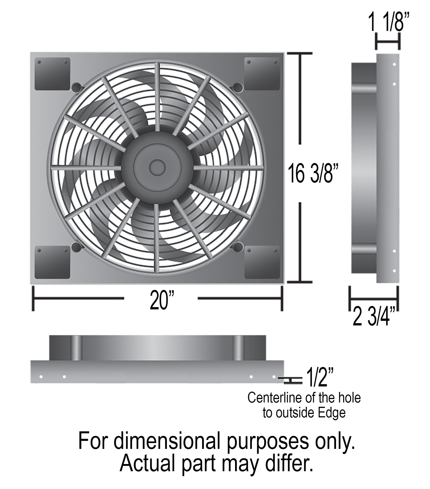 This High Output Single RAD Powerpack Fan is part of the HO Aluminum Shrouded Fan Series designed with popular applications in mind. This assembly measures 20" wide by 16 3/8" top to bottom and only 2 3/4" thick to offer an adjustable yet precision fit. The raw aluminum shroud gives the user the freedom to polish, anodize, paint, or simply leave it natural to create a truly custom look for an affordable price. The 14" high output two speed fan is one of the best in our line-up offering 2100 CFM when on high to create the most airflow possible in a compact size.